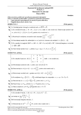 Probă scrisă la matematică M_mate-info Simulare pentru clasa a XII-a